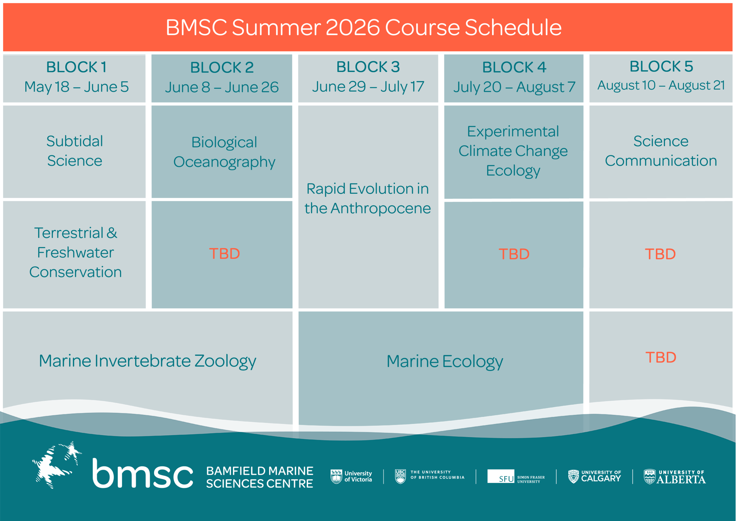 | 3 & 4 | Marine Ecology | 6 | June 29 - August 7 (6 weeks) |